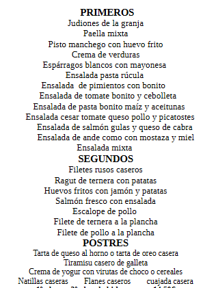 Menús y desayunos 05/02/2026