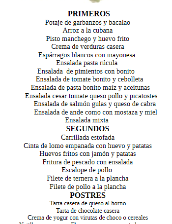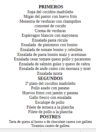 Para mediodía, qué mejor que poder degustar un rico menú diario en el que podrás elegir los platos que comer de la cocina tradicional española. Tenemos que contarte un secreto: no te vayas sin probar el cocido madrileño, es una de nuestras especialidades. ¿Quieres saber qué más cosas tenemos? Solo tienes que venir a visitarnos y empezar a disfrutar como nunca antes de comer fuera de casa.