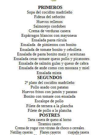 Menús y desayunos 25/03/2026