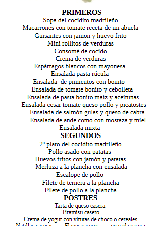 Menús y desayunos 04/03/2026