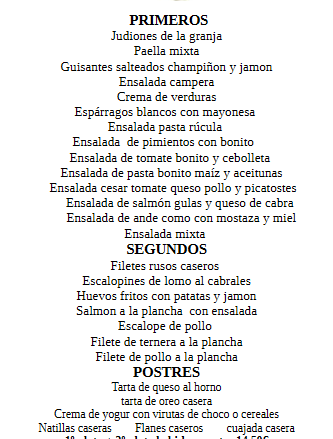 Menús y desayunos 09/04/2026