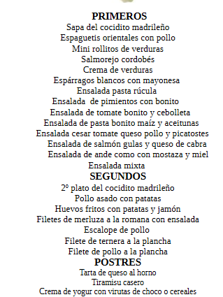 Menús y desayunos 15/04/2026